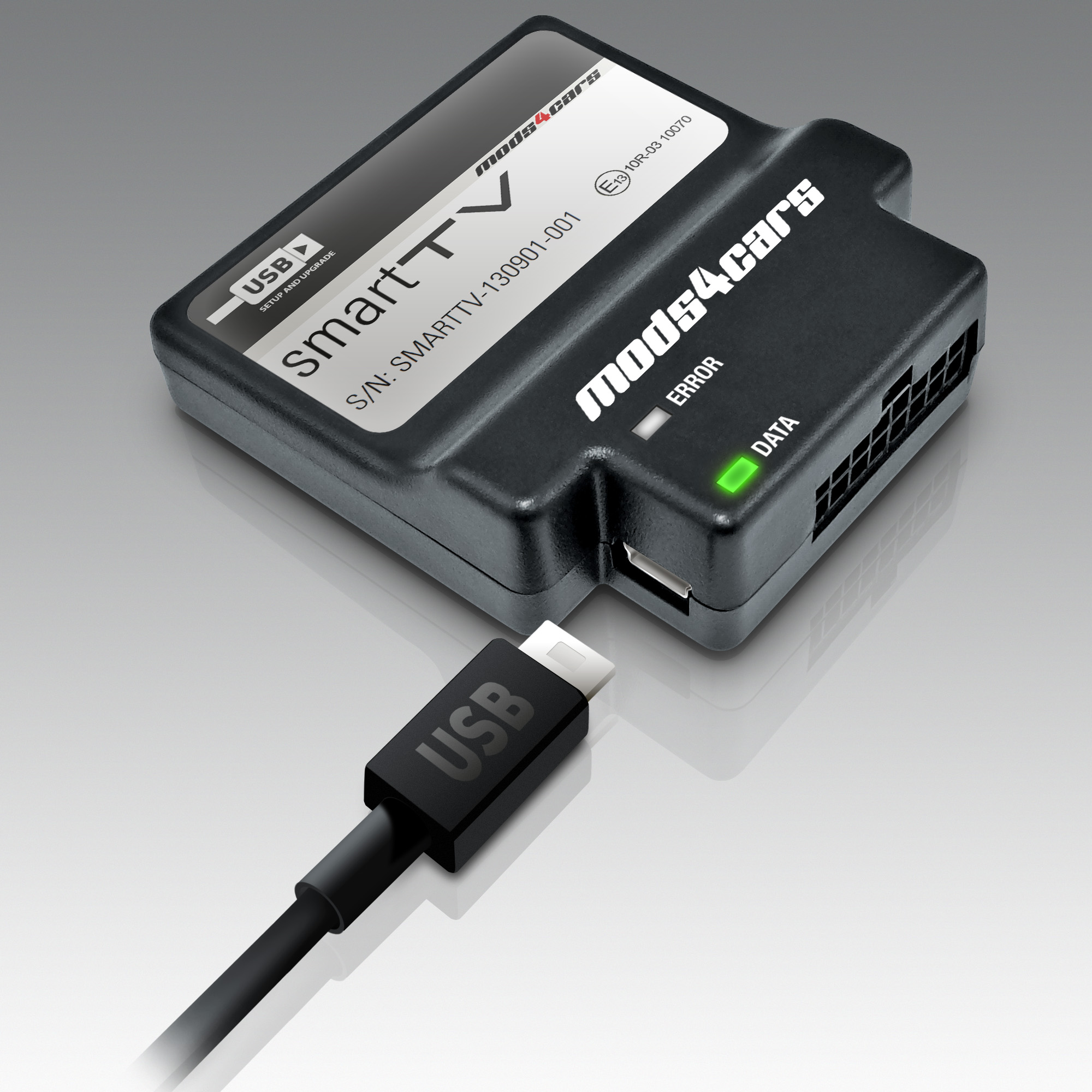 The SmartTV module comes with a standard USB port. It makes it possible to install software updates, which Mods4cars provides free of charge. This means that the TV in motion module is always up to date. The SmartTV system can be completely deactivated if required.